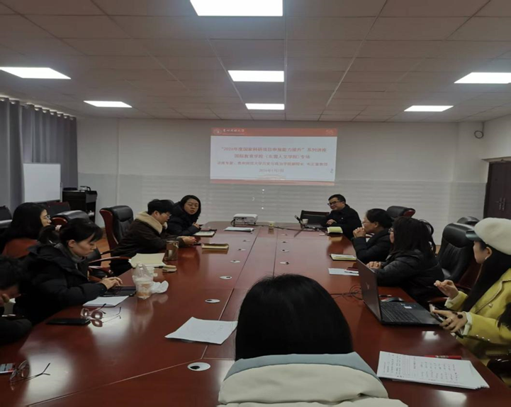 为深入推进有组织科研工作,切实提升学院教师国家级科研项目申报能力与立项成功率,助力学校科研高质量发展,2026年1月7日14:00,国际教育学院(东盟人文学院)在学院406会议室举办“2026年度国家级科研项目申报能力提升”专场讲座。本次活动特邀贵州师范大学历史与政治学院副院长、博士生导师韦正富教授担任主讲嘉宾,学院全体教师参加了此次专题培训。